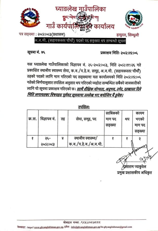 अ.न.मी. (सहायकस्तर चौथो) पदको पद सङ्ख्या थप सम्बन्धी सूचना ।