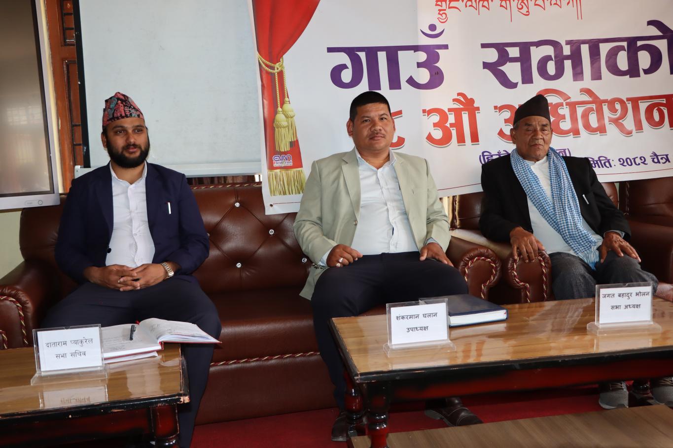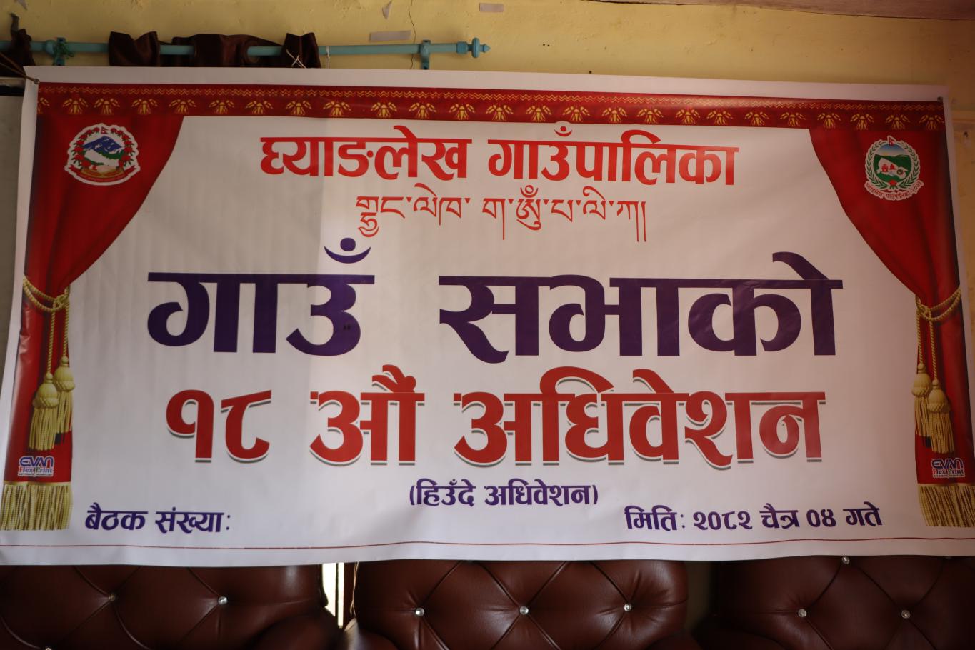 आज मिति २०८२।१२।०४ गते बुधबारको दिन घ्याङलेख गाउँपालिकाको गाउँ सभाको १८ औँ अधिवेशन (हिउँदे अधिवेशन) घ्याङलेख गाउँपालिकाका अध्यक्ष श्री जगत बहादुर भोलन ज्यूको अध्यक्षतामा, गाउँपालिकाका उपाध्यक्ष श्री शंकरमान घलान,प्रमुख प्रशासकीय अधिकृत श्री दाताराम प्याकुरेल,गाउँसभा सदस्यहरु, गाउँपालिकाका कर्मचारीहरु लगायतको उपस्थितिमा सम्पन्न भयो ।