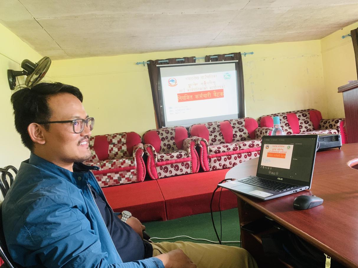 अघिल्लो बैठकको समीक्षा र सबै शाखाहरु, वडा कार्यालयहरु र स्वास्थ्य संस्थाहरुबाट २०८० भाद्र महिनाको प्रगति प्रतिवेदन प्रस्तुत गरि आज मिति २०८० असोज ५ गतेको नियमित स्टाफ बैठक सम्पन्न गरियो ।