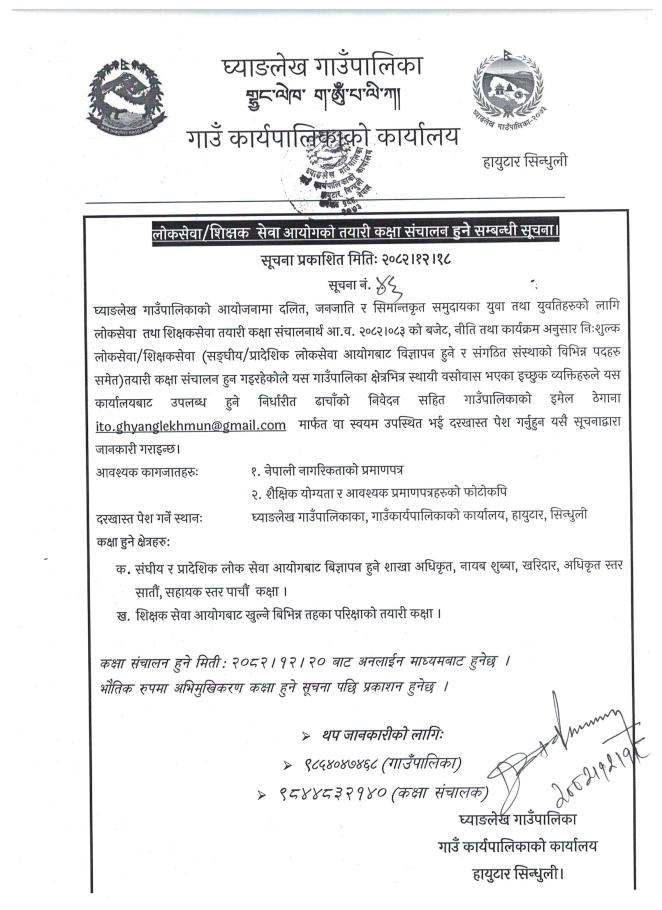 लोकसेवा/शिक्षक सेवा आयोगको तयारी कक्षा संचालन हुने सम्बन्धी सूचना ।