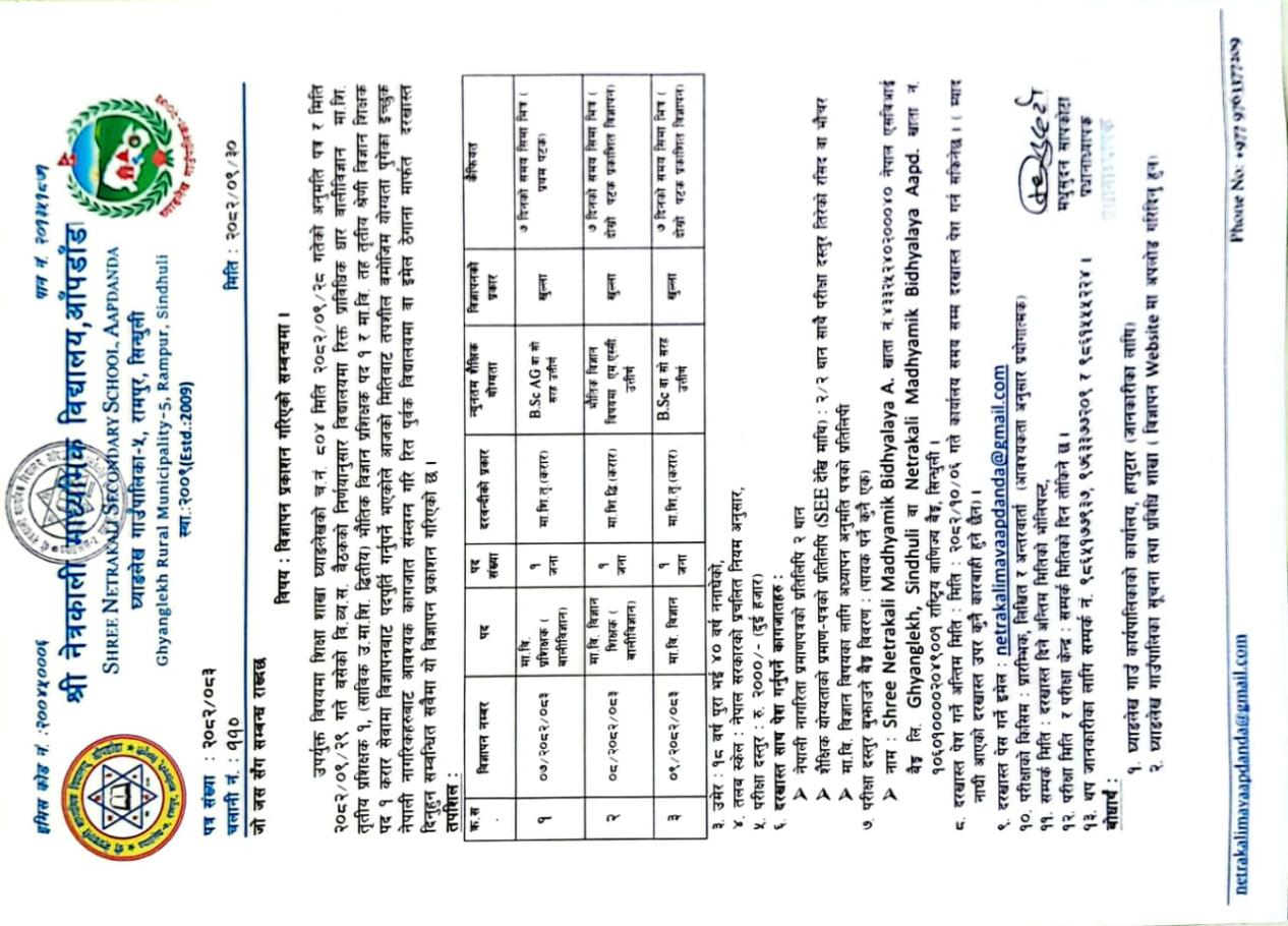 विज्ञापन प्रकाशन गरिएको सम्बन्धमा।