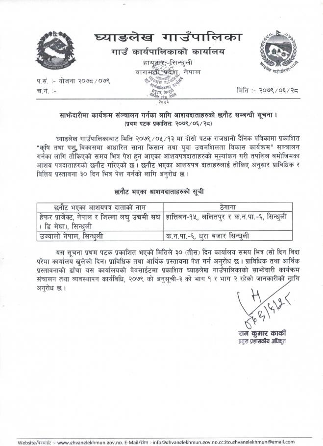 साझेदारीमा कार्यक्रम संचालन गर्नका लागि आशयदाताहरुको छनौट सम्बन्धी सूचना