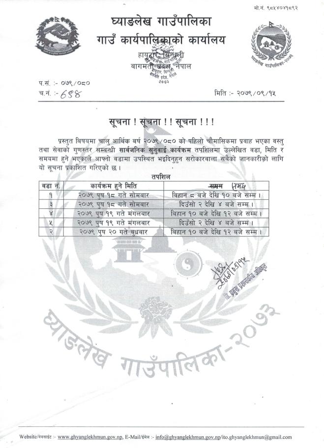 सार्वजनिक सुनुवाई कार्यक्रम हुने सम्बन्धी सूचना