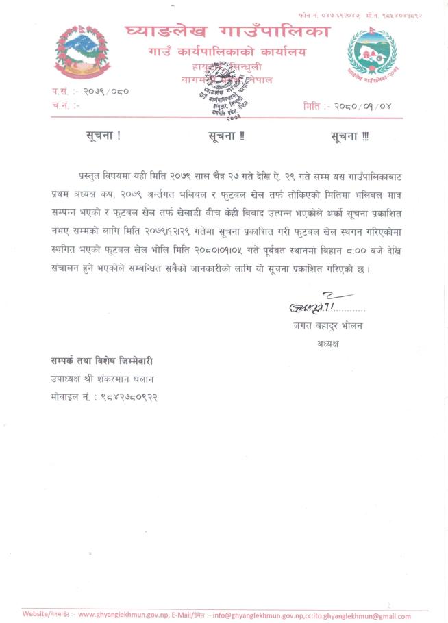 स्थगन गरिएको अध्यक्ष कपको फुटबल खेल पुन: सञ्चालन हुने सम्बन्धी सूचना