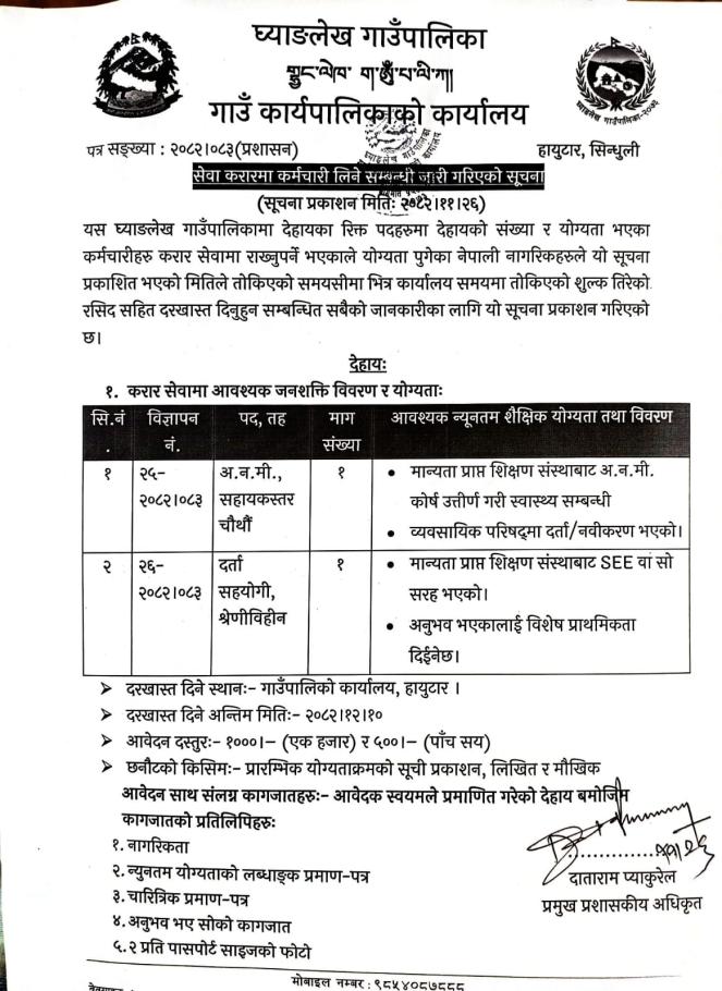 अ.न.मी. (सहायकस्तर चौथो) पदको पद सङ्ख्या थप सम्बन्धी सूचना ।