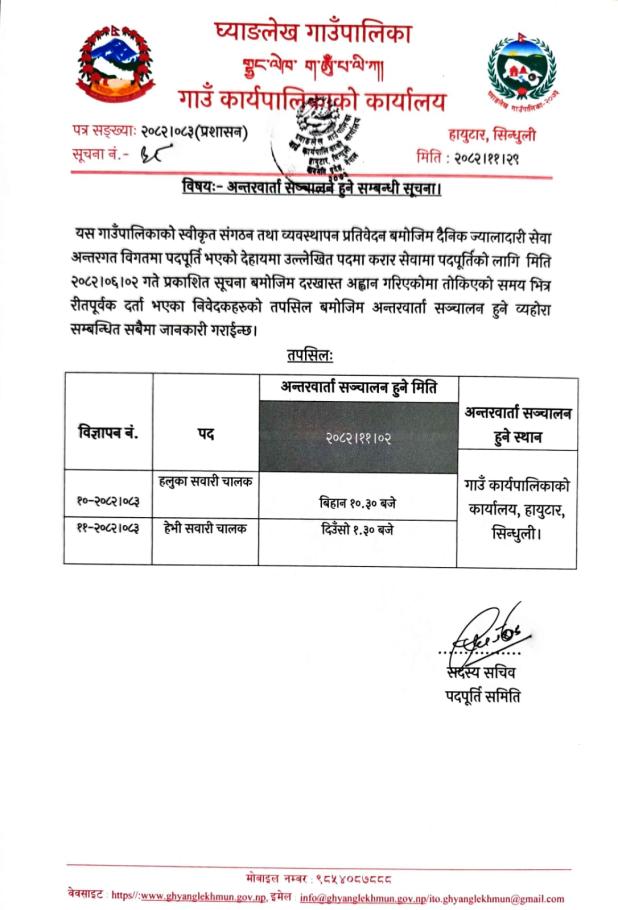 अन्तरवार्ता सञ्चालन हुने सम्बन्धी सूचना ।