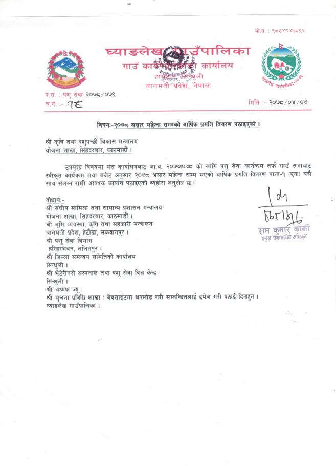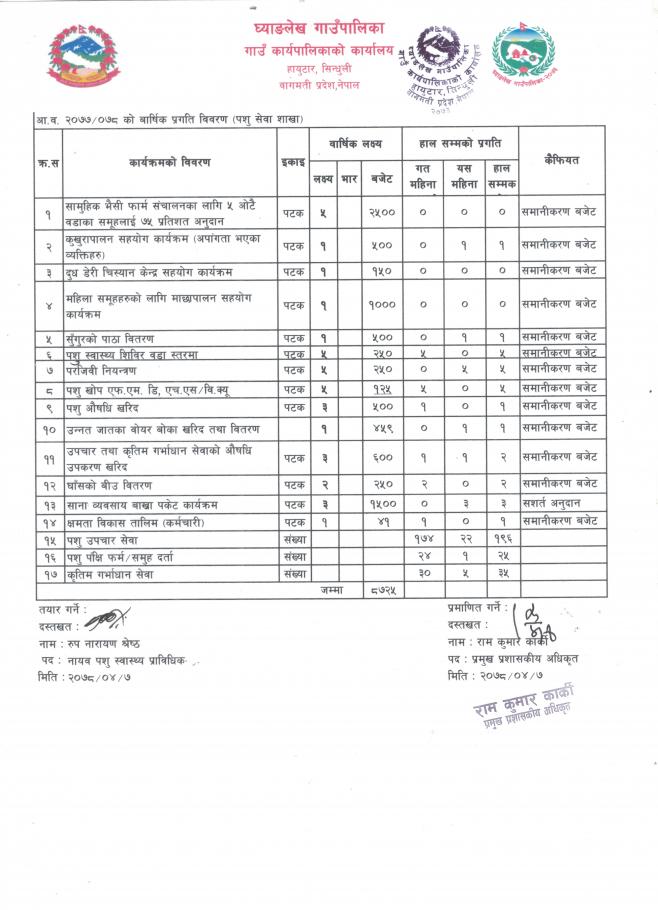 आ. व. २०७७।०७८ को पशु सेवा शाखाको वार्षिक प्रगति प्रतिवेदन