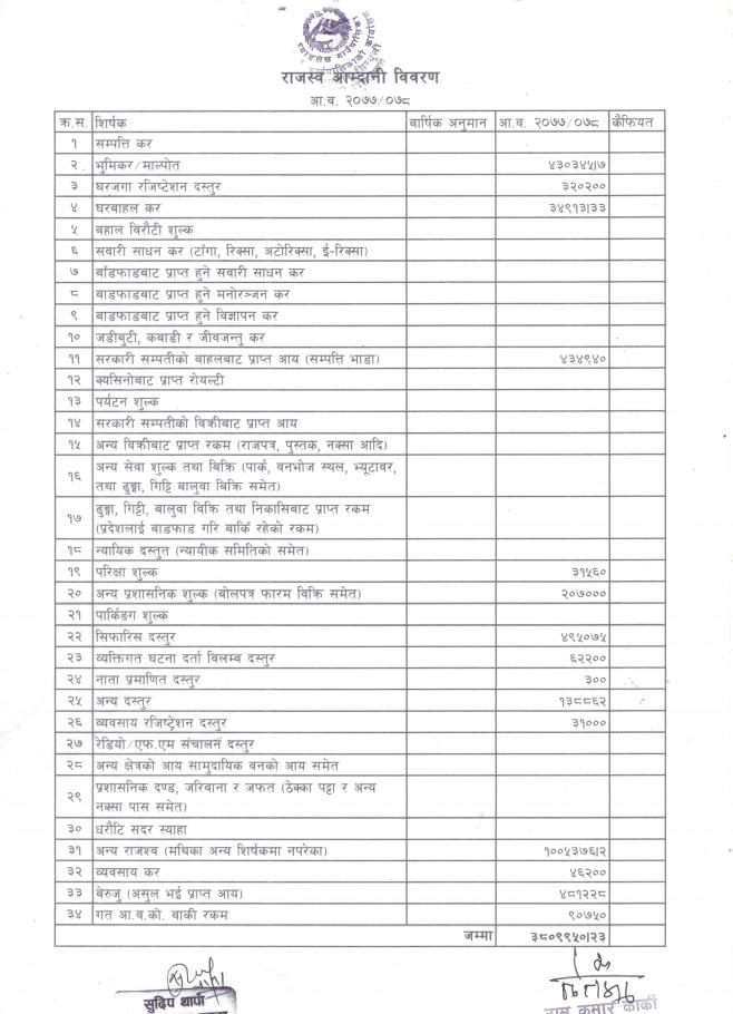 आ. व. २०७७।०७८ को राजस्व आम्दानीको वार्षिक प्रगति प्रतिवेदन