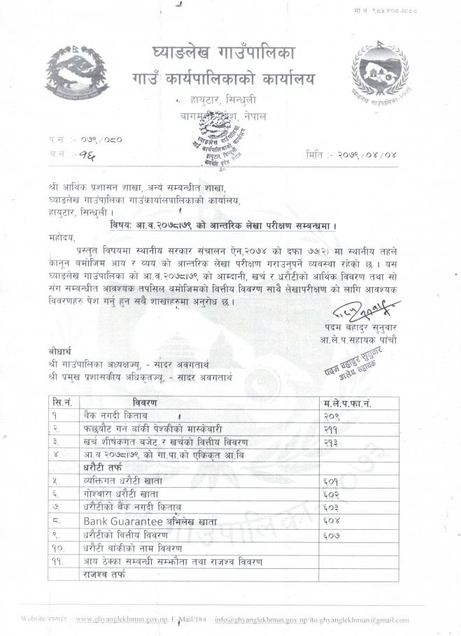 आ. व. २०७८।०७९ को आन्तरिक लेखा परीक्षण सम्बन्धमा