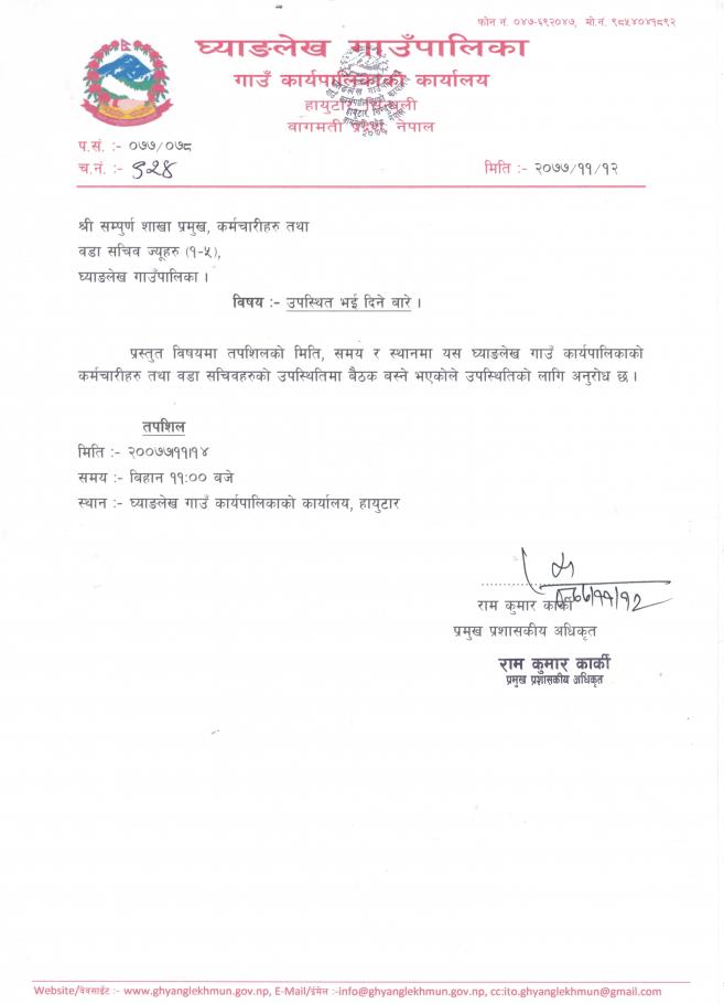 उपस्थित भई दिने बारे