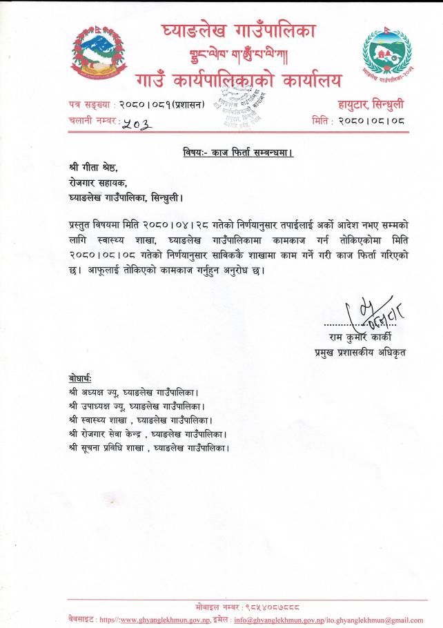 काज फिर्ता सम्बन्धमा