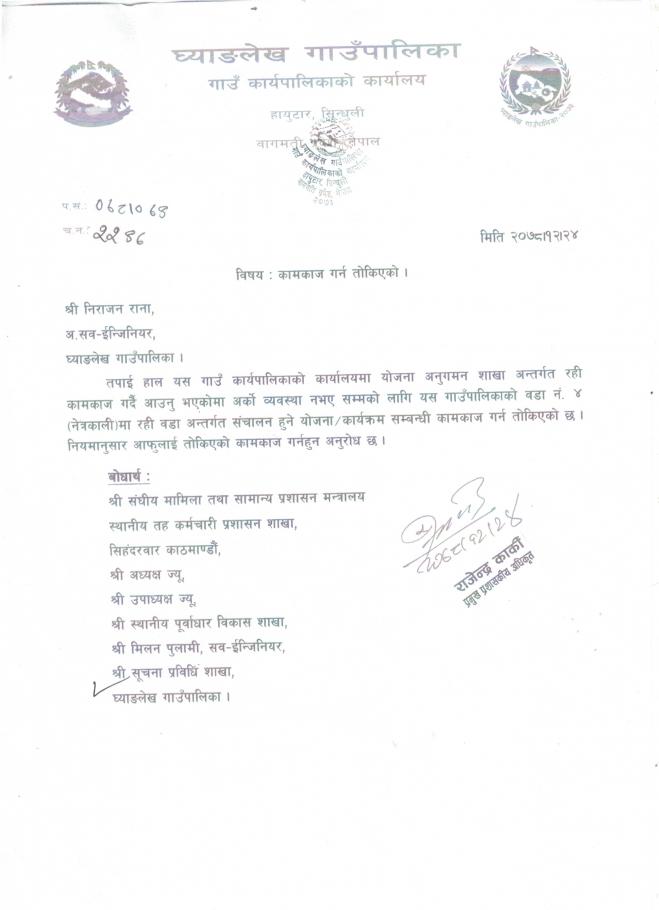 कामकाज गर्न तोकिएको बारे - श्री निराजन राना