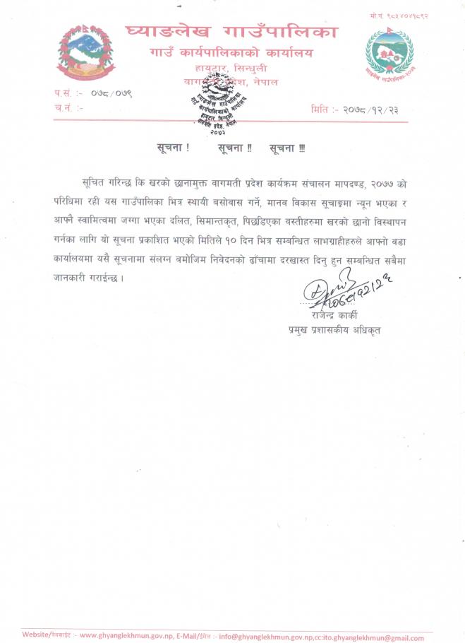 खरको छानामुक्त कार्यक्रम संचालन सम्बन्धी सूचना