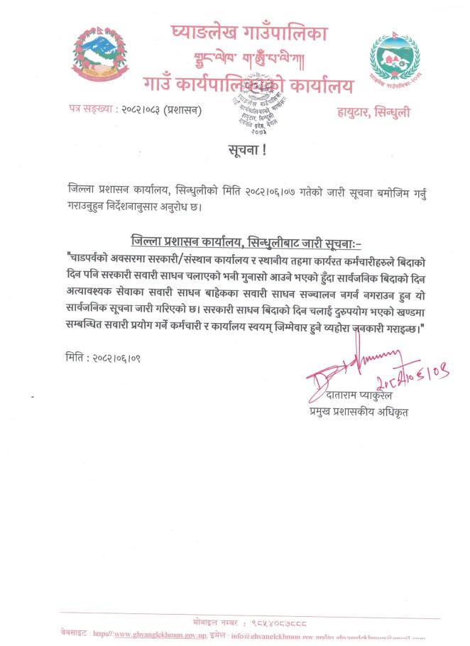 जिल्ला प्रशासन कार्यालयबाट जारी सूचना ।