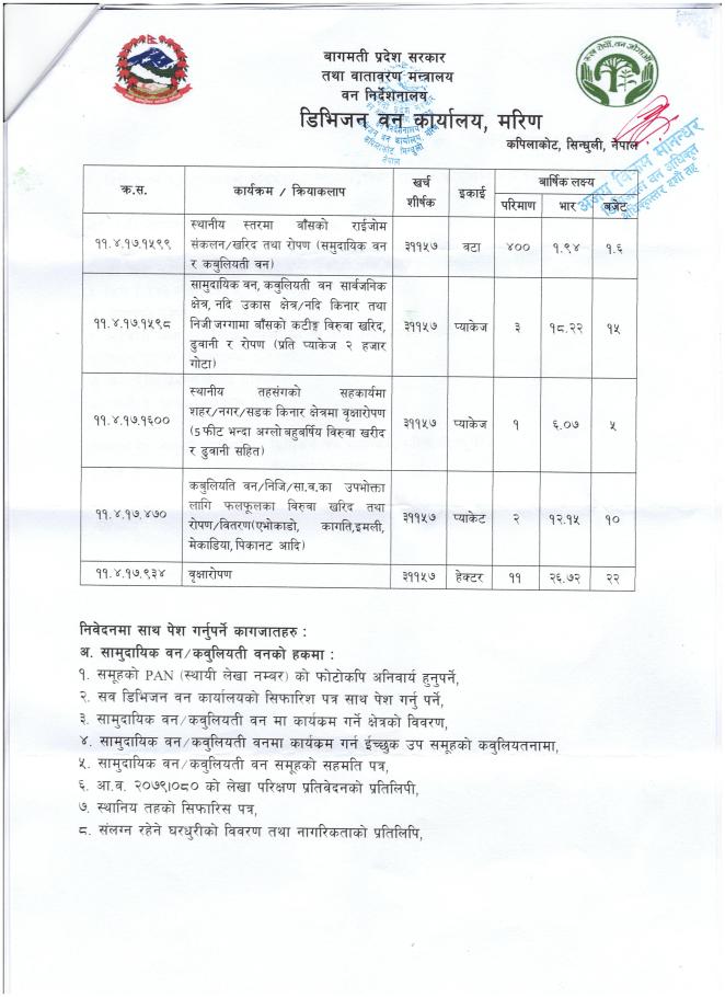 डिभिजन वन कार्यालय, मरिणको प्रस्तावना पेश गर्ने सम्बन्धी सूचना