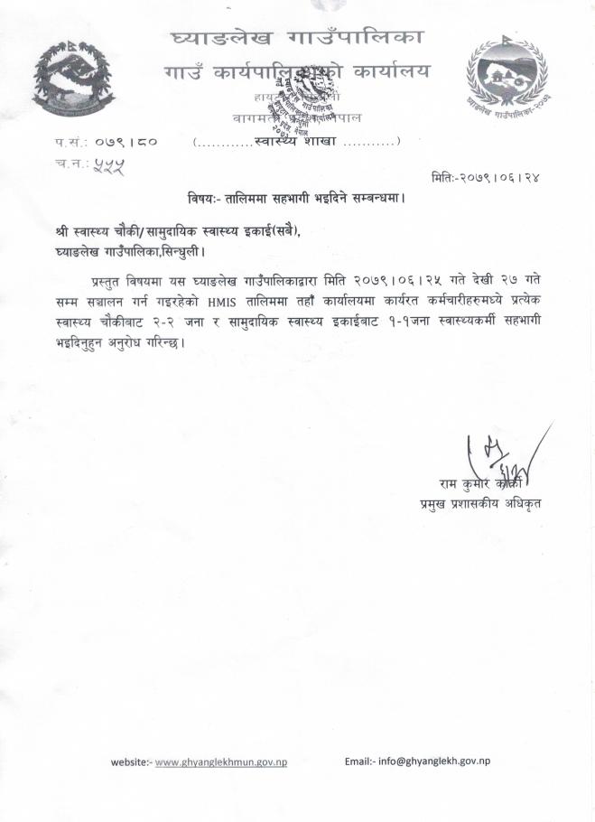 तालिममा सहभागी भइदिने सम्बन्धमा