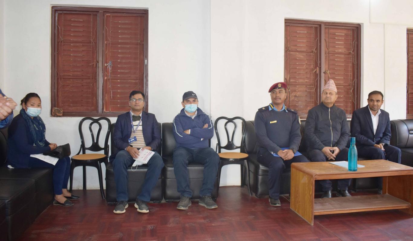 नागरिक सुनुवाई कार्यक्रमको सिलसिलामा घ्याङलेख गाउँपालिका आउनुभएका सिन्धुली जिल्लाका प्र. जि. अ. श्री रमेश न्यौपानेज्यू, प्रमुख प्रहरी उपरिक्षक श्री गोविन्द थपलियाज्यू, नि.जि. समन्वय अधिकारी श्री गणेश कुमार ढकालज्यू लगायत अन्य सर/म्यामहरुसँग घ्याङलेख गाउँपालिकाका अध्यक्ष श्री जगत बहादुर भोलनज्यू, प्रमुख प्रशासकीय अधिकृत श्री सुरेश कुमार अधिकारी सर, ईलाका प्रहरी कार्यालय बस्तिपुरका प्रहरी निरक्षक श्री सरोज राई र अधिकृत छैठौं श्री गिरीराज खनाल सर घ्याङलेख गाउँपालिकाको कार्यालय, हायुटारमा छलफल गर्नुहुँदै ।
