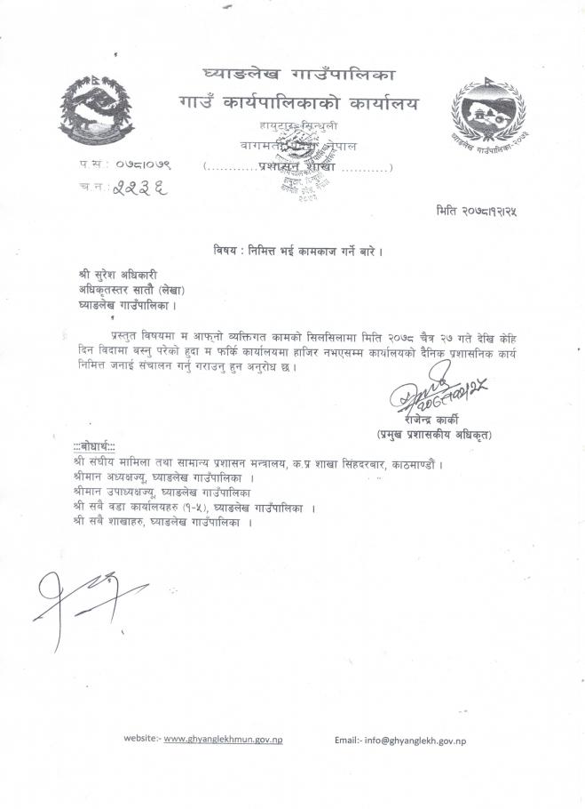 निमित्त भई कामकाज गर्ने बारे - श्री सुरेश कुमार अधिकारी