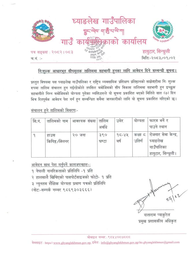 नि: शुल्क आधारभूत सीपमूलक तालिममा सहभागी हुनका लागि आवेदन दिने सम्बन्धी सूचना ।