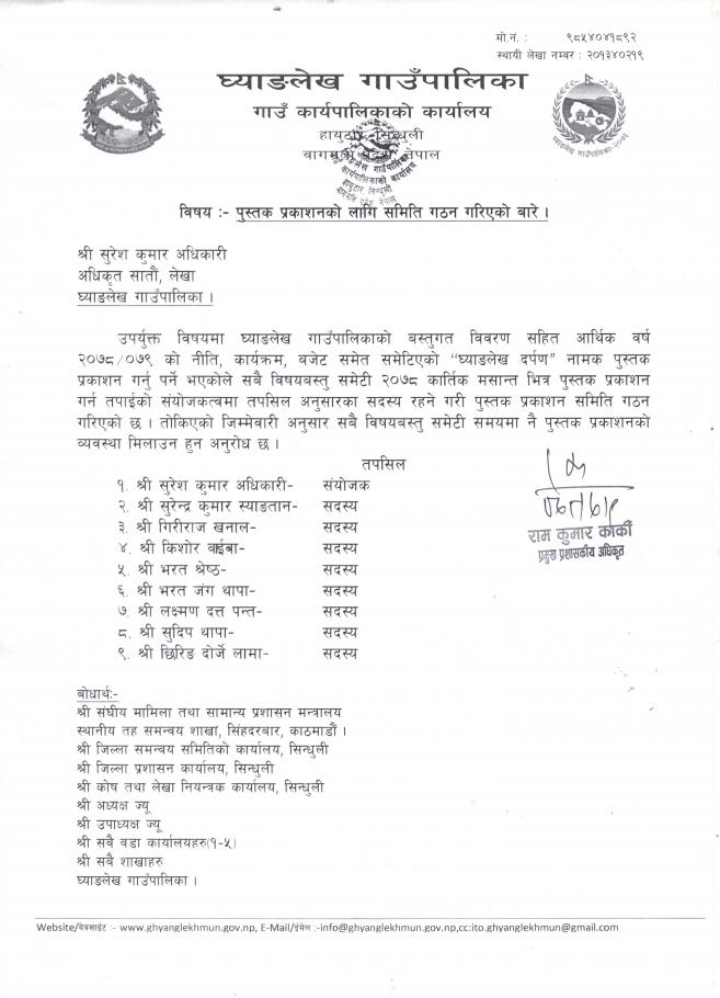 पुस्तक प्रकाशनको लागि समिति गठन गरिएको बारे