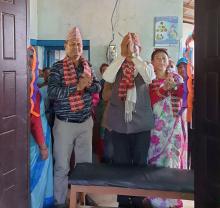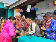 आज मिति २०७८ फागुन २७ गते शुक्रबारका दिन घ्याङलेख गाउँपालिकाको वडा नं. ४ स्थित नेत्रकाली स्वास्थ्य चौकीमा यसै गाउँपालिकाका अध्यक्षज्यू - जगत बहादुर भोलन, उपाध्यक्षज्यू - दुर्गादेवी सुनुवार र प्रमुख प्रशासकीय अधिकृत - सुरेश कुमार अधिकारी सरको समुपस्थितिमा अध्यक्षज्यू र उपाध्यक्षज्यूले रिबन काटेर बर्थिङ सेन्टर (प्रशुती गृह) को उद्घाटन गर्नु भयो । उक्त उद्घाटन समारोहमा वडा नं. ४ का अध्यक्षज्यू, स्वास्थ्य संयोजक, प्रहरी प्रशासन लगायत अन्य स्थानीय बासिन्दाहरुको उपस्थिति रहेको थियो । प्रशुती गृह संचालनमा आए पछि अब वडा नं. ४ का महिलाहरु प्रत्यक्ष रुपमा लाभाम्बित हुने छन् ।