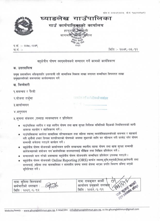 बहुक्षेत्रीय पोषण स्वयमसेवकले सम्पादन गर्ने कामको कार्य विवरण