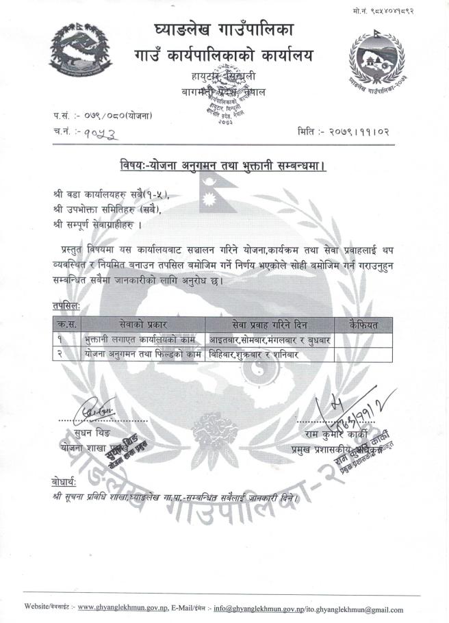 योजना अनुगमन तथा भुक्तानी सम्बन्धमा