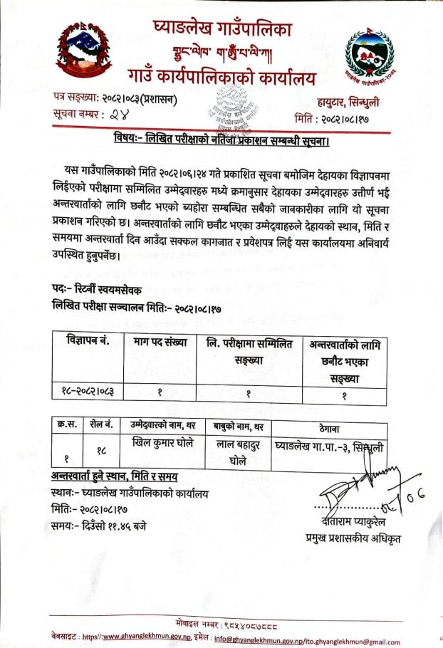 लिखित परीक्षाको नतिजा प्रकाशन सम्बन्धी सूचना ।