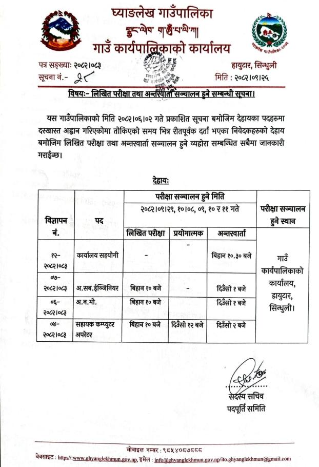 लिखित परीक्षा तथा अन्तरवार्ता हुने सम्बन्धी सूचना ।