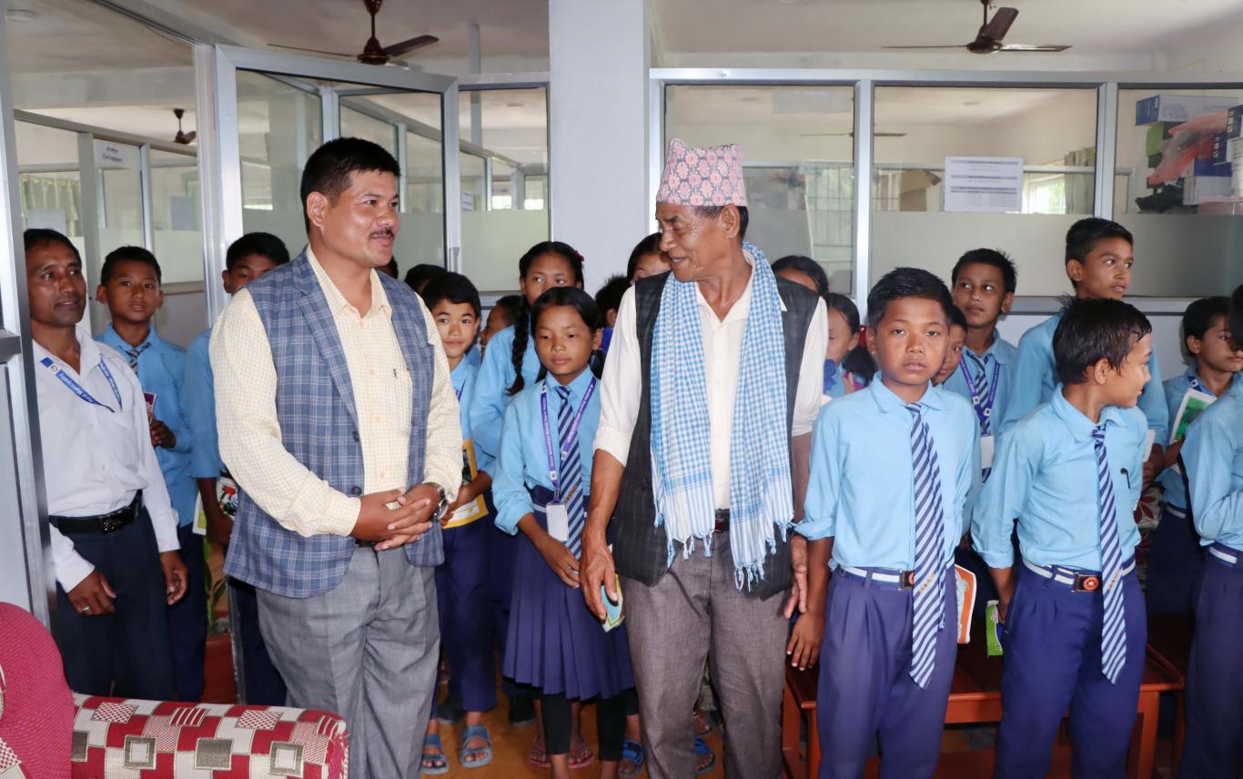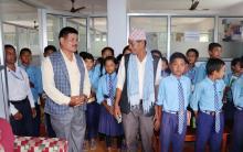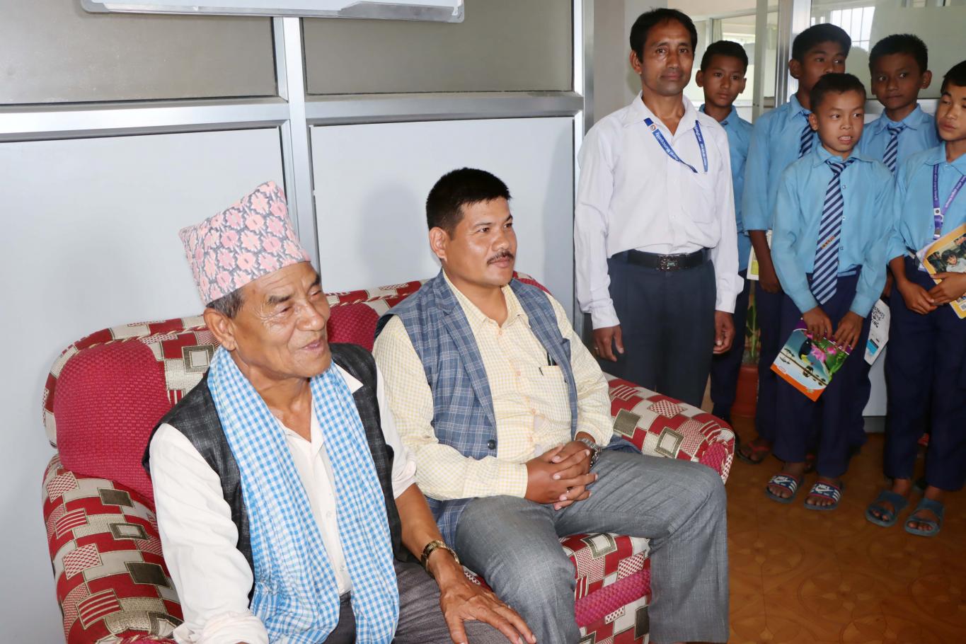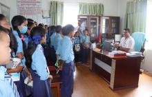 सामाजिक विषय अन्तर्गत गाउँपालिका सम्बन्धी अध्ययन तथा अवलोकनमा मा. वि. हायुटारको कक्षा ७ मा अध्ययनरत विद्यार्थीहरु आज गाउँपालिका परिसरमा अध्यक्षज्यू, उपाध्यक्षज्यू र प्रमुख प्रशासकीय अधिकृत सरसँग अन्तरक्रिया गर्दै ।