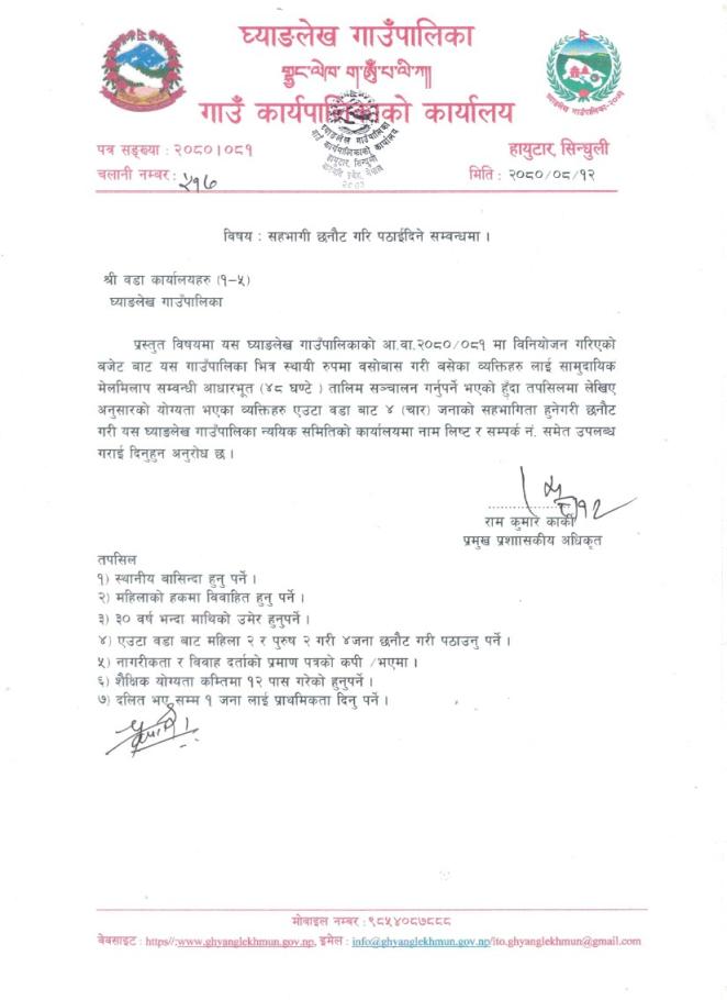 सहभागी छनौट गरि पठाईदिने सम्बन्धमा