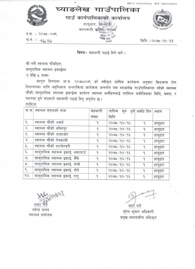 सहभागी पठाईदिने बारे - श्री सबै स्वास्थ्य चौकीहरु