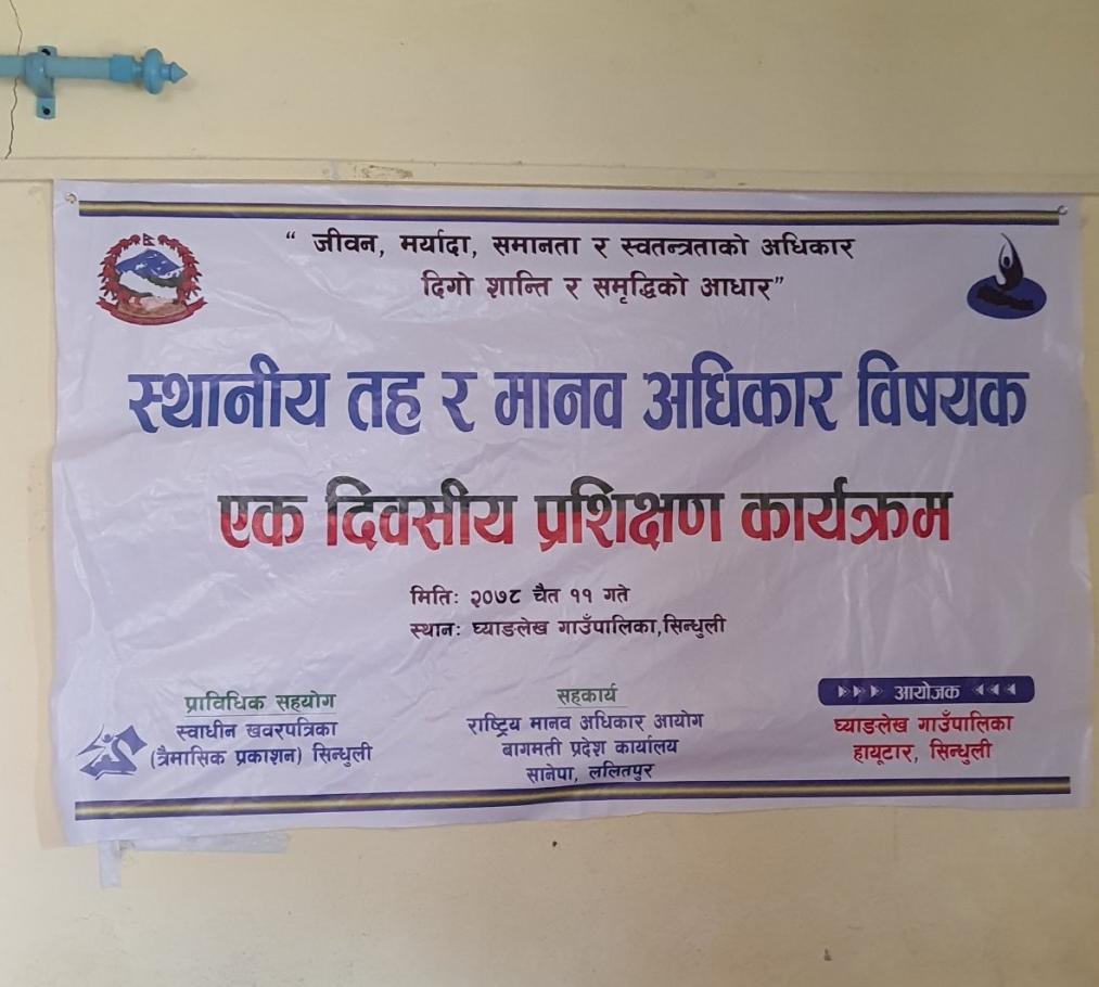 स्थानीय तह र मानव अधिकार विषयक एक दिने प्रशिक्षण कार्यक्रम आज घ्याङलेख गाउँपालिकामा सम्पन्न