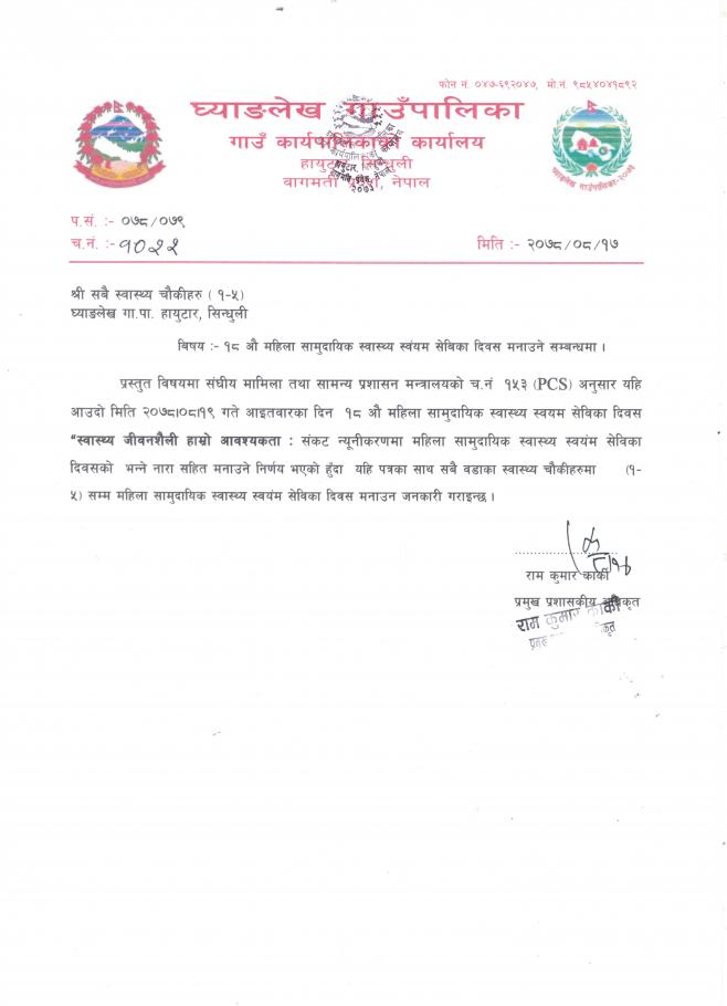 १८ औं महिला सामुदायिक स्वास्थ्य स्वयंसेबिका दिवस मनाउने सम्बन्धमा