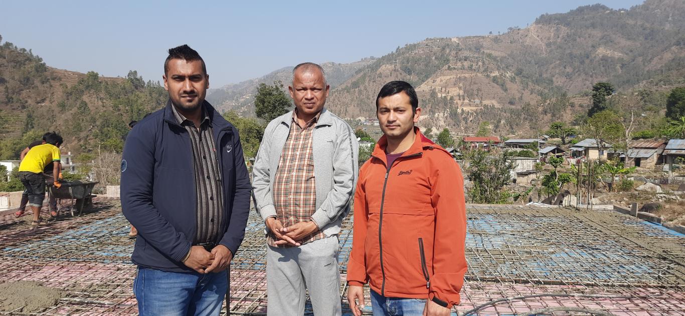 आज मिति २०७७ फाल्गुण १९ गते वडा २ नम्बर वडा कार्यालयको तला थपको ढलानको अनुगमन गर्नुहुँदै प्रमुख प्रशासकीय अधिकृत श्री राम कुमार कार्की सर, इन्जिनियर श्री दिपेश न्याैपाने र लेखा सहायक श्री रुद्र प्रसाद दहाल सर ।