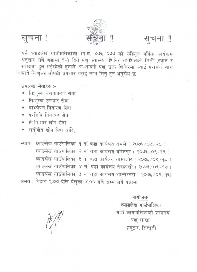 पशु स्वास्थ्य शिविर सम्बन्धि सूचना ।