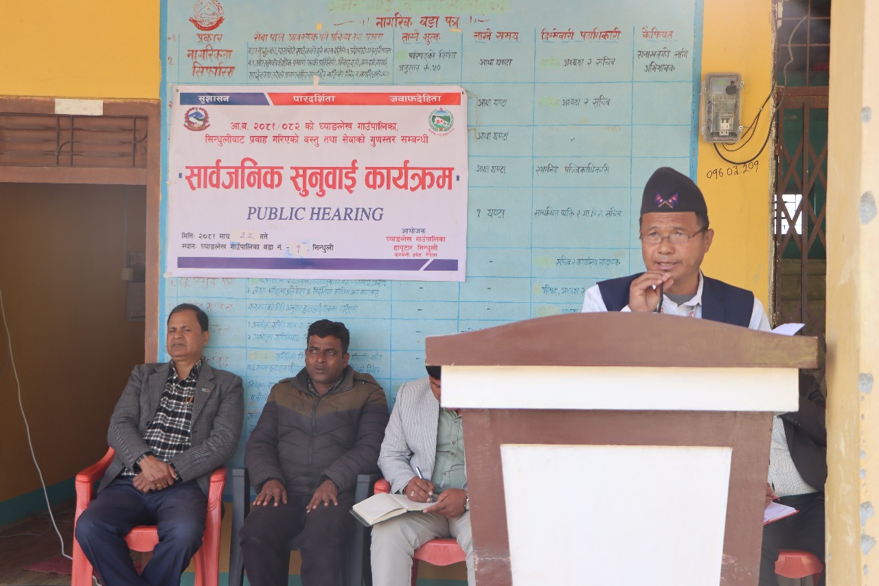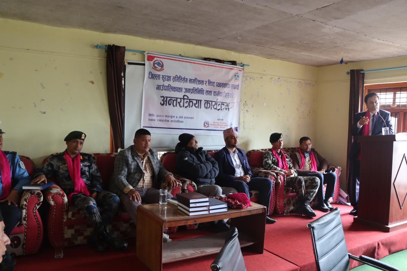 आज मिति २०८२ साल मंसिर १५ गतेका दिन घ्याङलेख गाउँपालिकाका उपाध्यक्ष श्री शंकरमान घलान ज्यूको अध्यक्षता र सिन्धुली जिल्लाका प्रमुख जिल्ला अधिकारी श्री स्किम श्रेष्ठ ज्यूको प्रमुख आतिथ्यतामा जिल्ला सुरक्षा समितिका पदाधिकारीहरुसँग स्वागत तथा अन्तरक्रिया कार्यक्रम गरियो ।