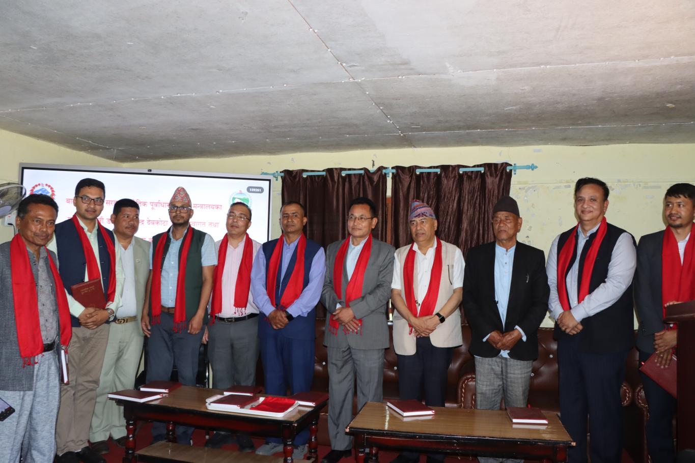 आज मिति २०८३।०१।०८ गतेका दिन बागमती प्रदेश सरकार,भौतिक पूर्वाधार विकास मन्त्रालयका माननीय मन्त्री डा.दिनेशचन्द्र देवकोटा ज्यूको स्वागत तथा अन्तरक्रिया कार्यक्रम घ्याङलेख गाउँपालिकाका अध्यक्ष श्री जगत बहादुर भोलन ज्यूको अध्यक्षतामा सम्पन्न भएको छ । कार्यक्रममा बागमति प्रदेश सरकारका माननीय श्री गंगा नारायण श्रेष्ठ,माननीय श्री मातृका प्रसाद भट्टराई,बागमती प्रदेश सरकार भौतिक पूर्वाधार विकास मन्त्रालयका सचिव श्री ईश्वरचन्द्र मरहट्टा,बिभिन्न पार्टिका प्रतिनिधिहरु,सिन्धुली जिल्लाका बिभिन्न कार्यालयका कार्यालय प्रमुखहरु,घ्याङलेख गाउँपालिकाका जनप्रतिनिधि एवं कर्मचारीहरु,स्थानीय वुद्धिजीवीहरु लगायतक